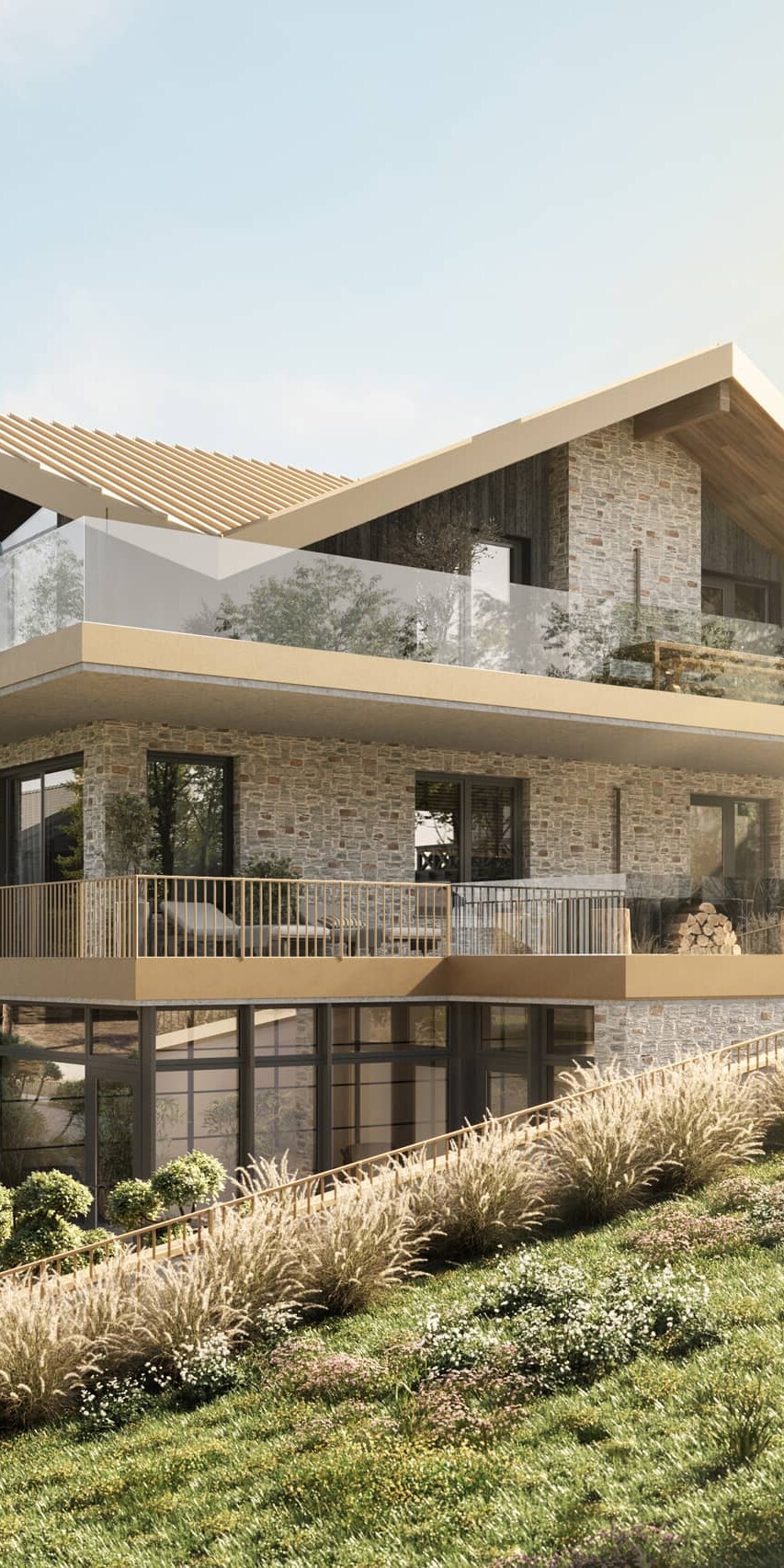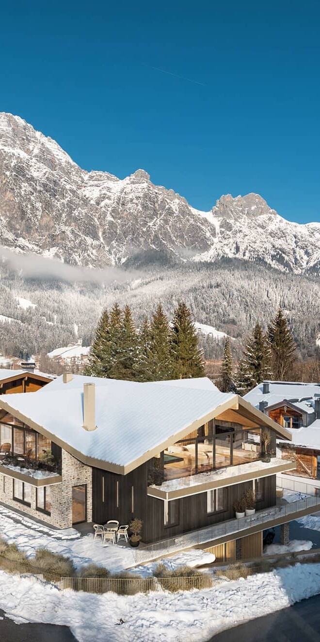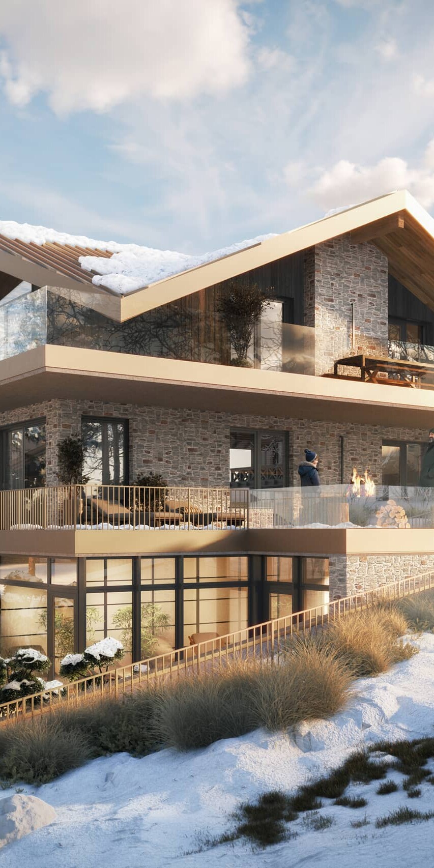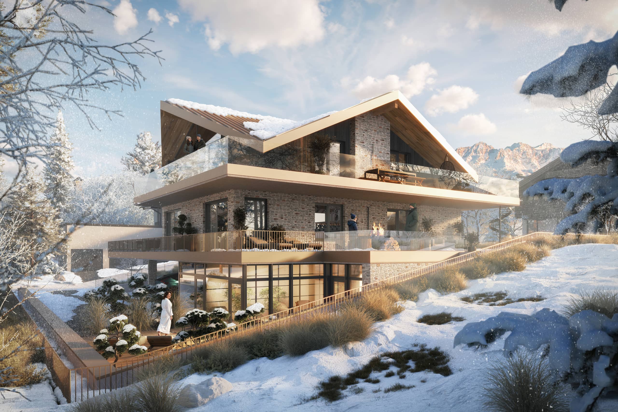273 m² Außenterrassen öffnen den Blick auf die Bergwelt und schaffen einzigartige Freiräume zwischen Natur und Architektur.