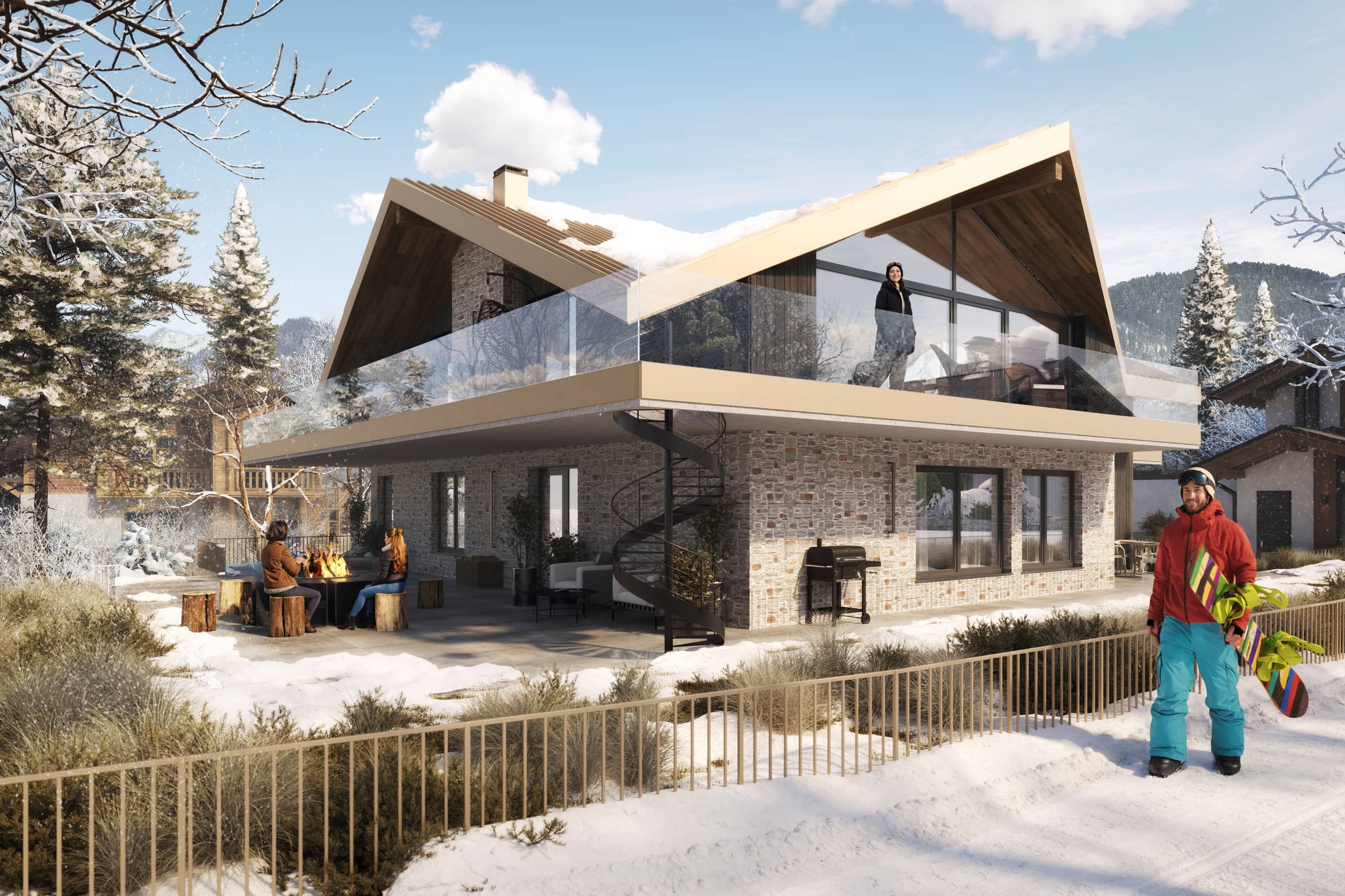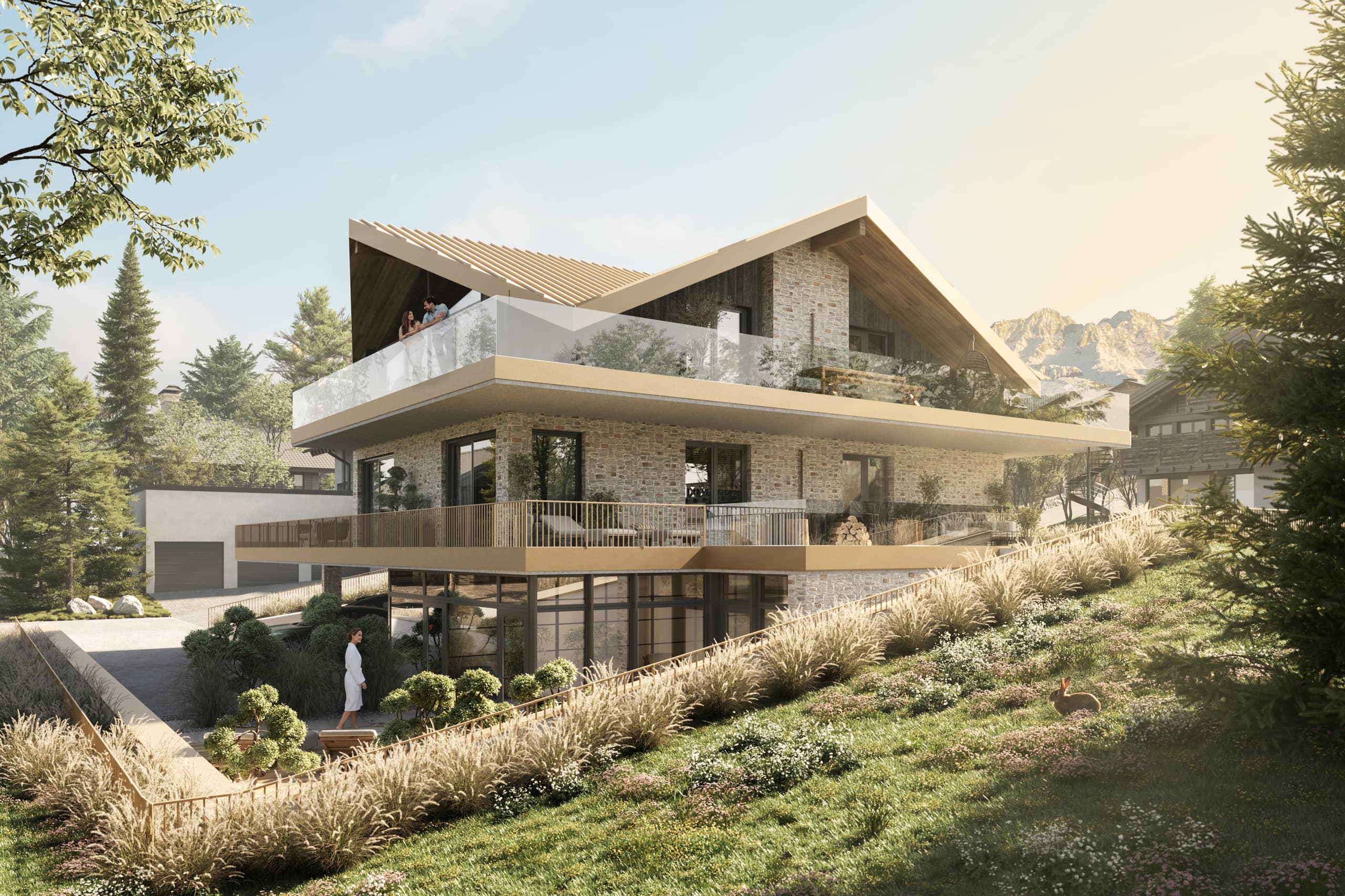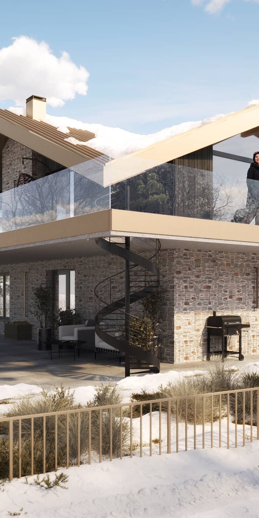 273 m² Außenterrassen öffnen den Blick auf die Bergwelt und schaffen einzigartige Freiräume zwischen Natur und Architektur.