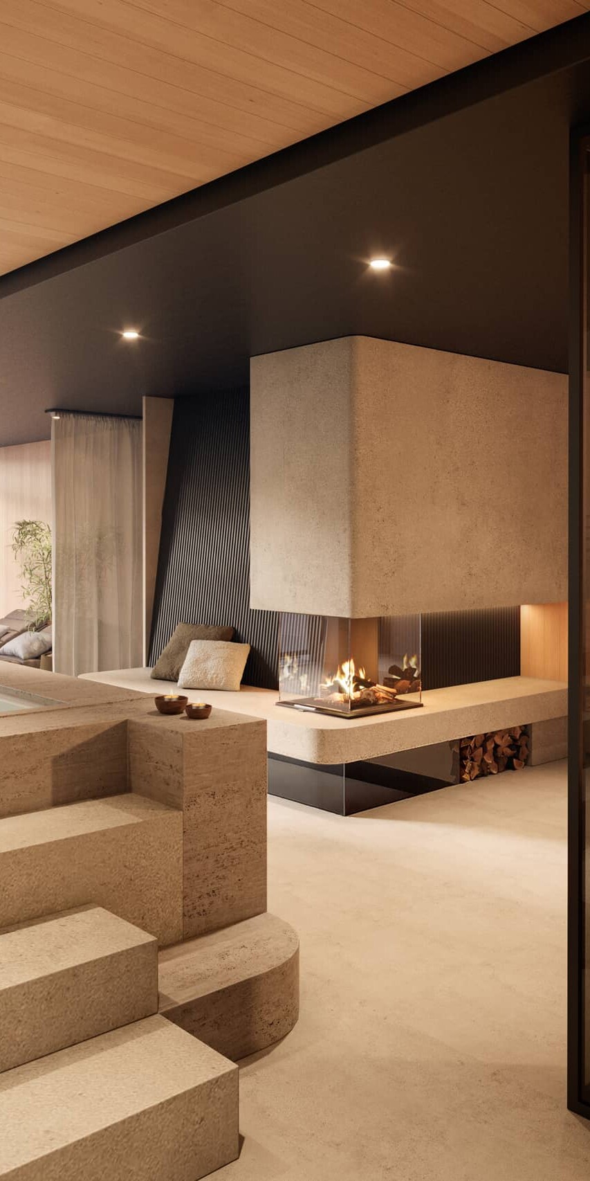 Feuer und Architektur treten in Dialog – Wärme, Licht und Struktur im Gleichgewicht. Offene Kamine im Wohn- und Wellnessbereich verleihen jedem Raum Geborgenheit und Charakter. Energieeffiziente Haustechnik, nachhaltige Materialien und zeitlose Architektur sichern dauerhafte Wertbeständigkeit.