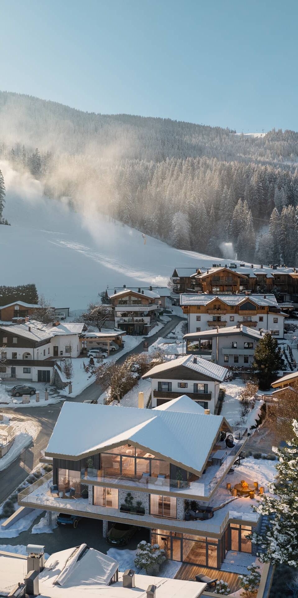 Residenz 273 steht für modernes Wohnen mit alpin-zeitlosem Charakter. Klare Linien und natürliche Materialien – Altholz, Naturstein, Eichenparkett – schaffen eine Atmosphäre von Wärme und Authentizität. Großzügige Glasfronten öffnen den Blick auf die Leoganger Bergwelt, durchdachte Grundrisse ermöglichen Privatsphäre und fließende Übergänge zwischen Innen und Außen. So entsteht ein Ambiente, das Ruhe, Licht und Freiheit verbindet.