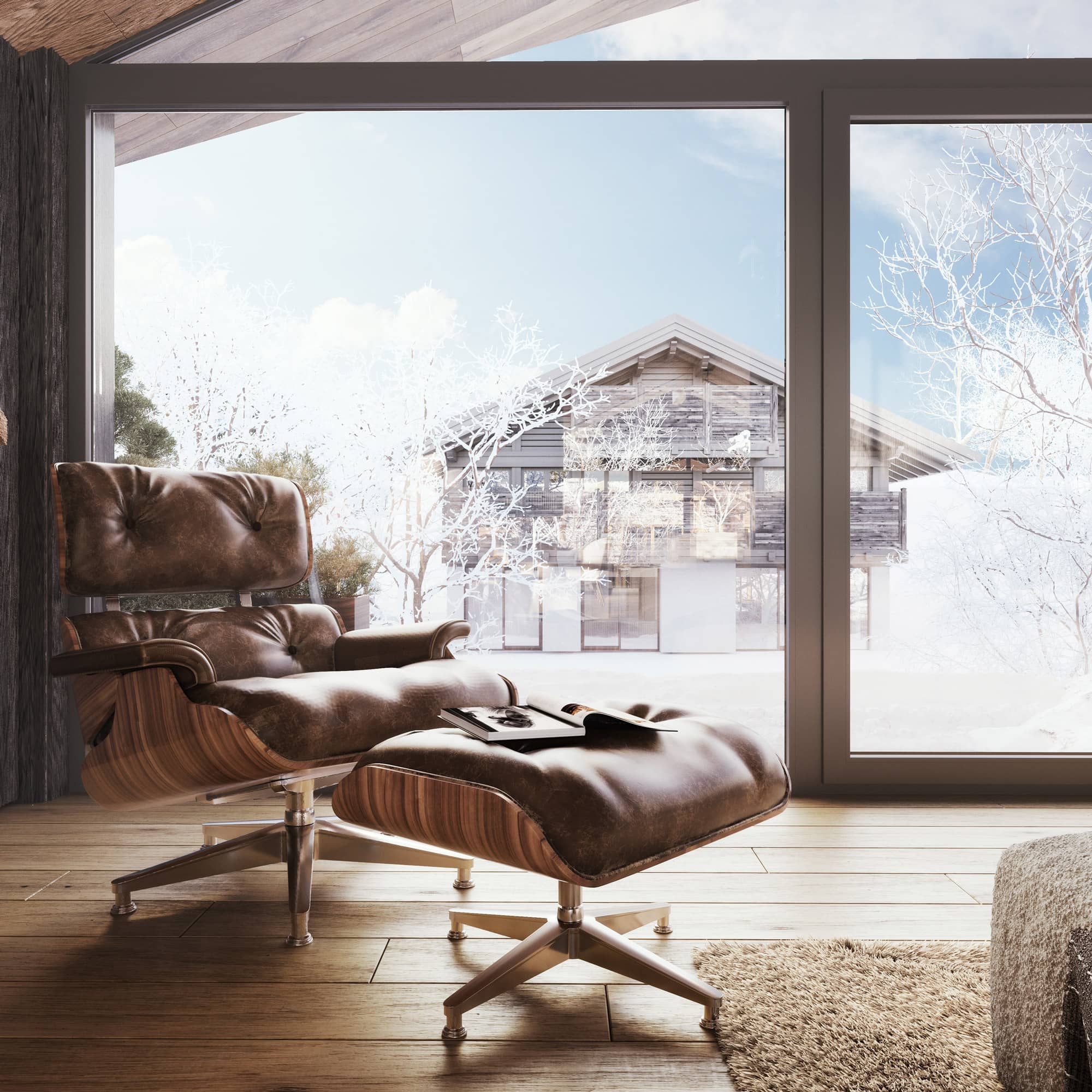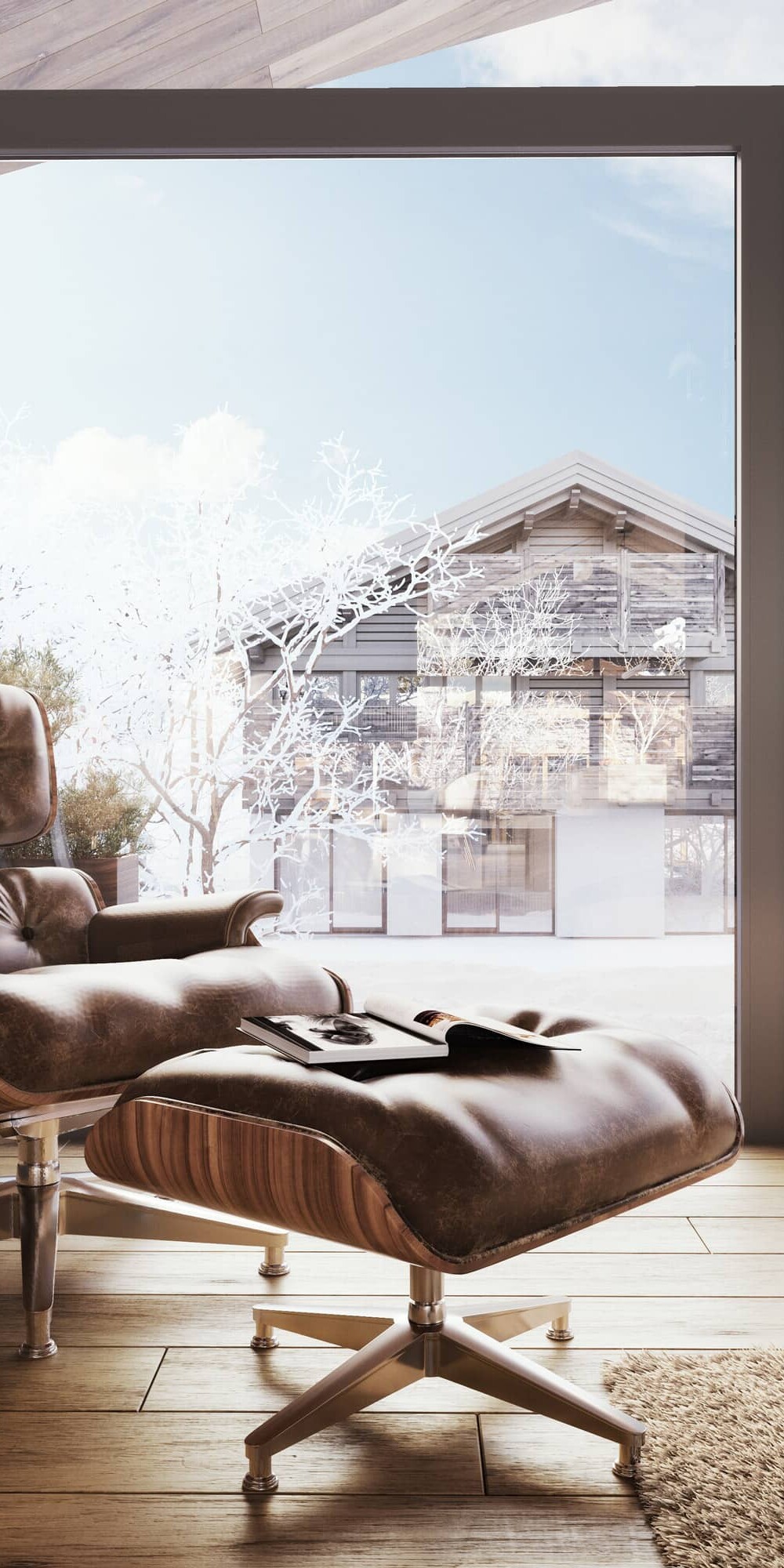 Hier trifft architektonische Großzügigkeit auf alpine Gemütlichkeit: ein offener Kamin, eine (optionale) maßgefertigte Küche, ein Spiel aus Licht und Material. Die Terrassen umfassen den Raum wie ein Amphitheater und öffnen den Blick auf die Leoganger Steinberge.